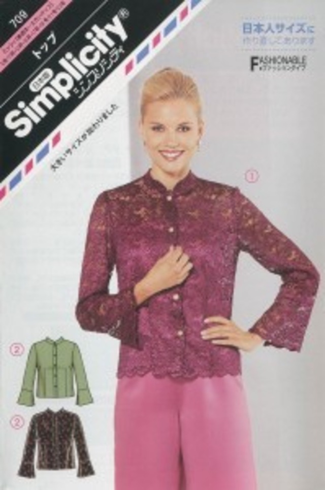 ◆型紙 パターン タックハイネックブラウス(770) ◆タイプ ミッシィ(7〜17号) ◆商品説明 首に沿ったハイネックにタックを施した上品で柔らかな印象のブラウス。 後ろワンボタン留めのプルオーバータイプ。長袖とコンパクトな半袖のデザイン2種。 ◆適した布地 やや薄手のソフトな布地 (ローン/サテン/シャンブレー/ジョーゼット/レーヨン混/合繊) ※その他、サイズ、出来上がり寸法、必要な材料、用布量などは、画像内の仕様をご覧ください。