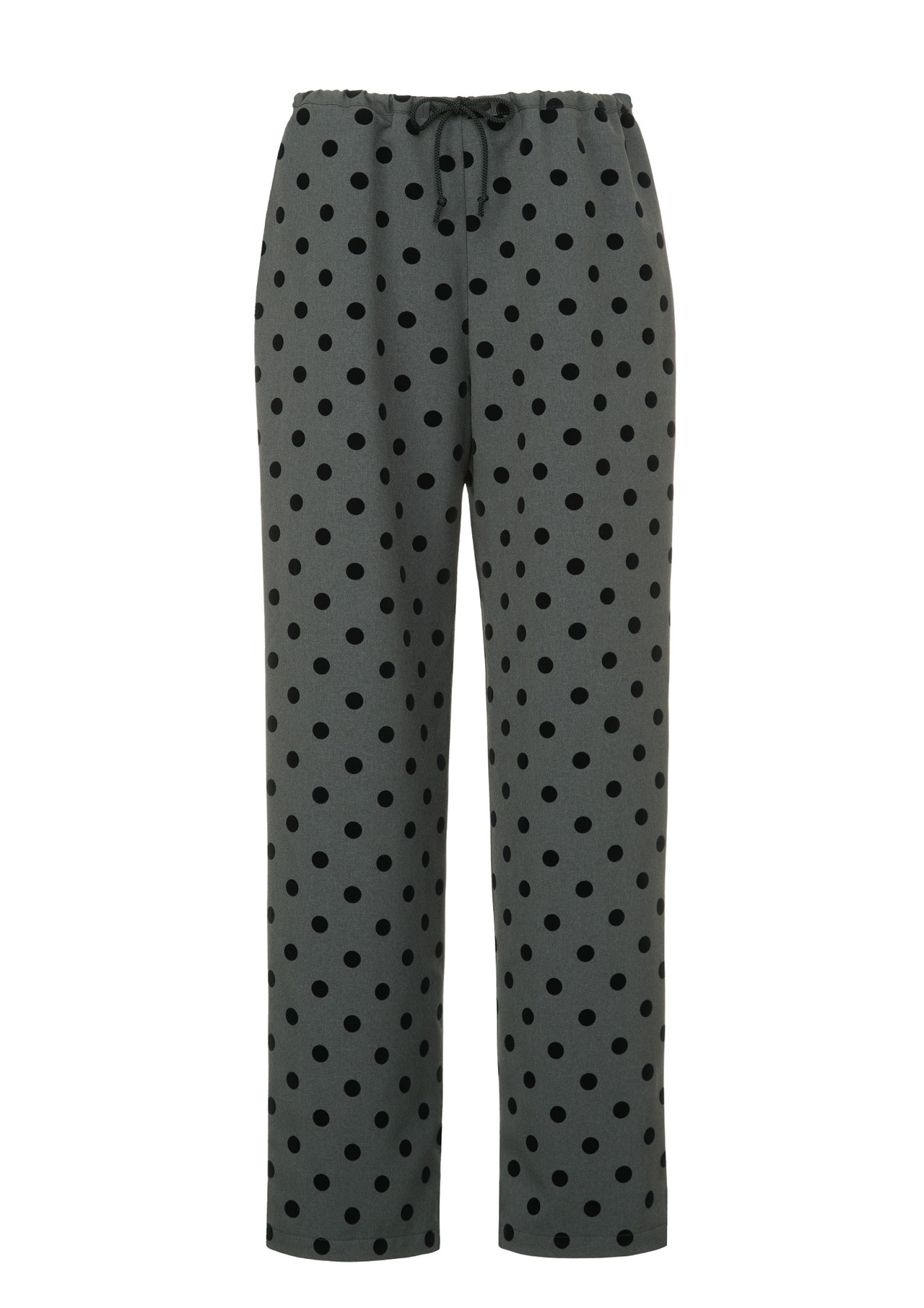 ・ウエストゴムの簡単な仕立てと、流行に左右されない腰まわりがすっきりとしたストレートシルエットが幅広い世代に人気。