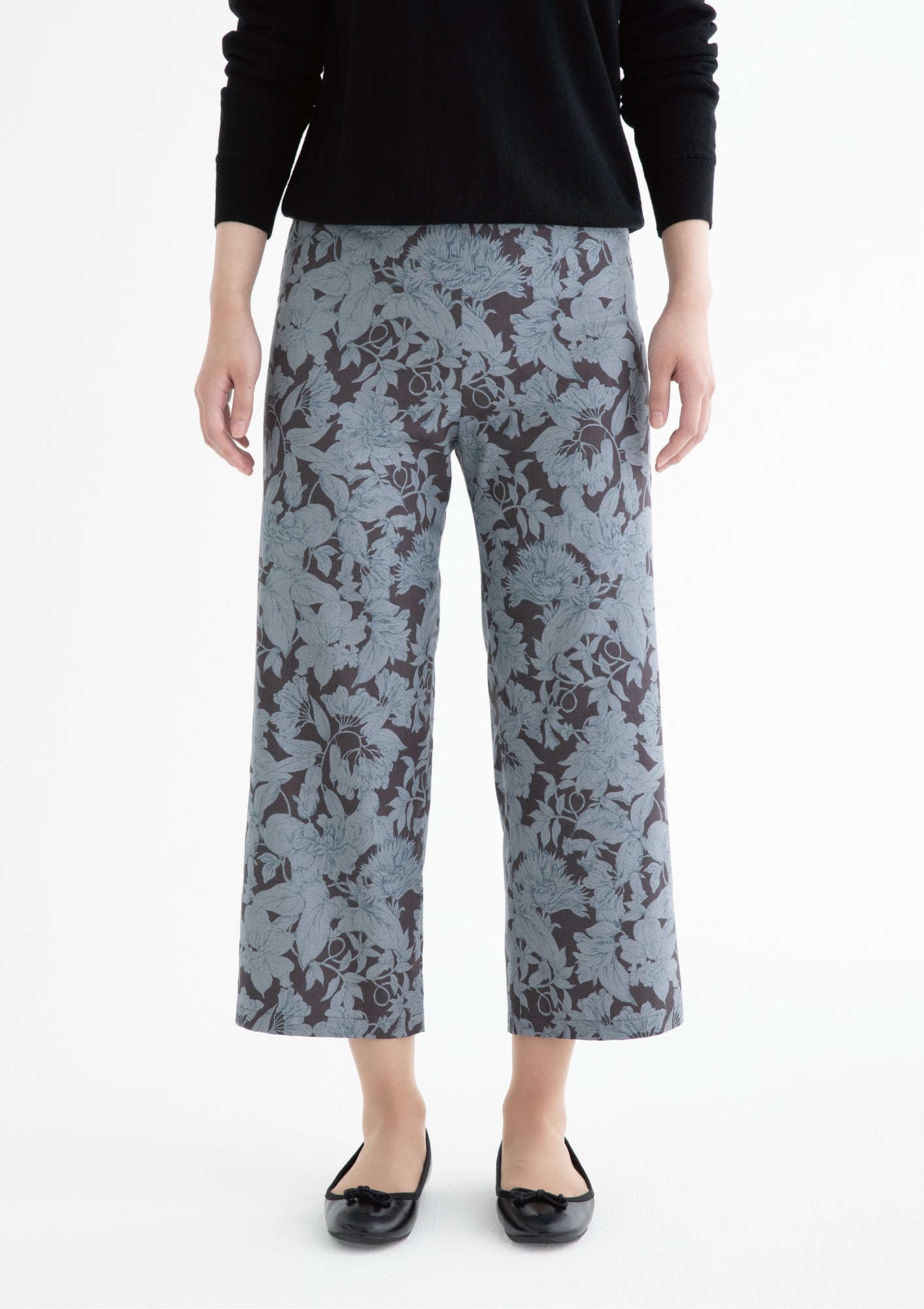 ・ウエストがもたつかないシンプルなシルエットのパンツは、ワンピースとの重ね着コーデや、布の柄を楽しめます。