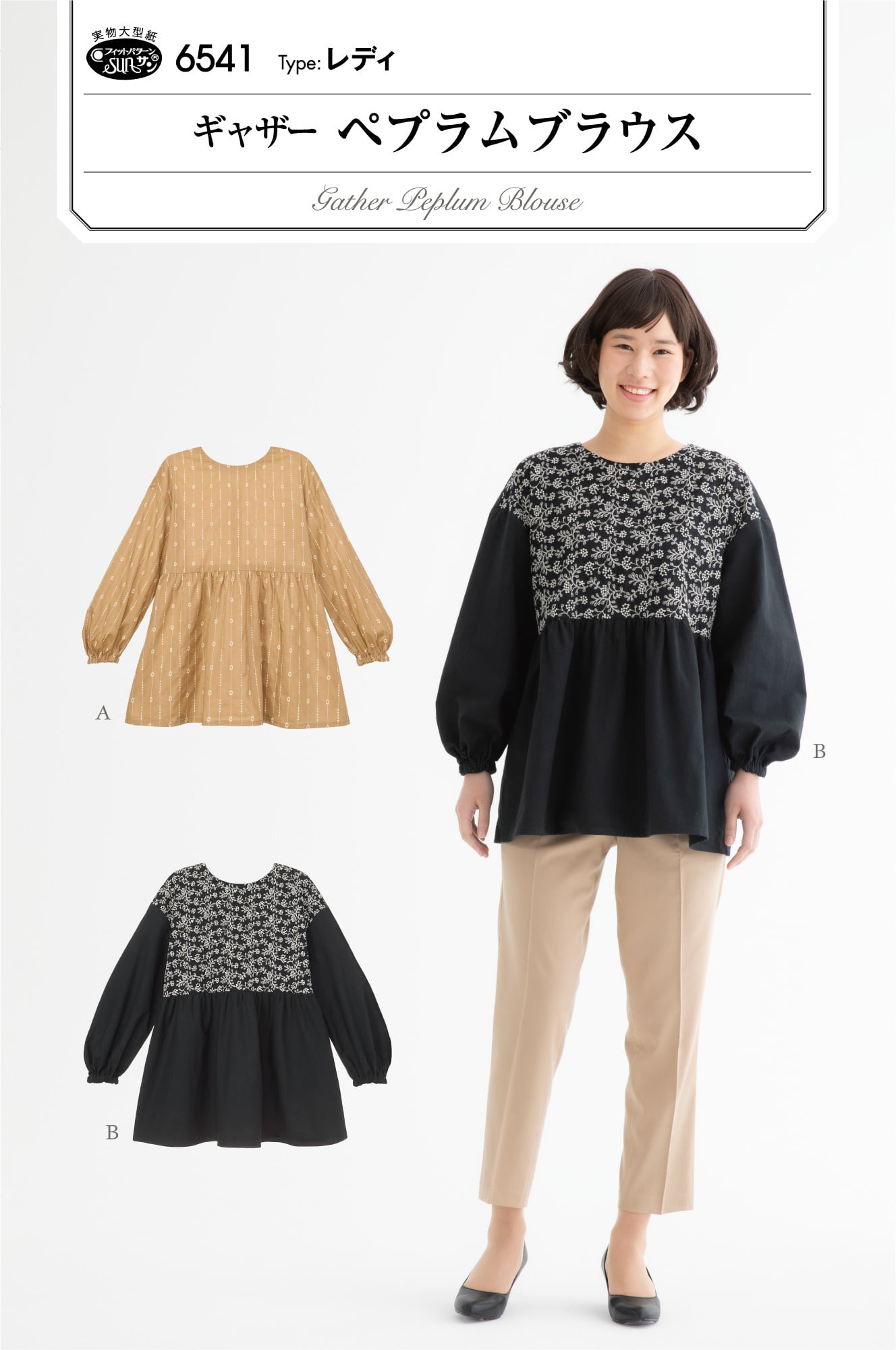 ・脚長効果のあるウエストより高い位置の切り替えに、ふんわりとギャザーを寄せたペプラムが気になるお腹や腰まわりをカバーするプルオンブラウス。