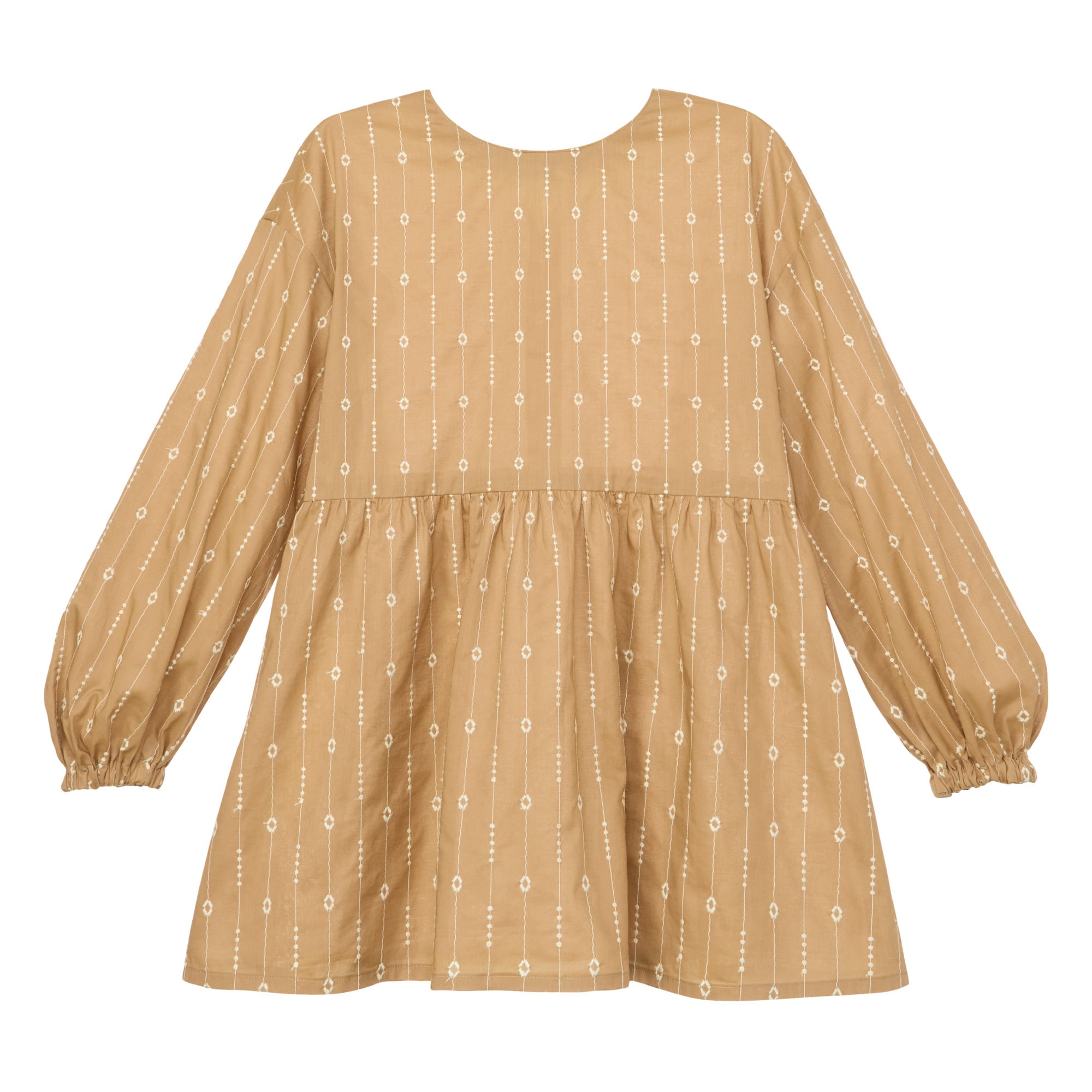 ・袖は程よいボリュームとパターンニングにこだわった袖口ギャザーの立体感で甘くなりすぎない大人のバランス。