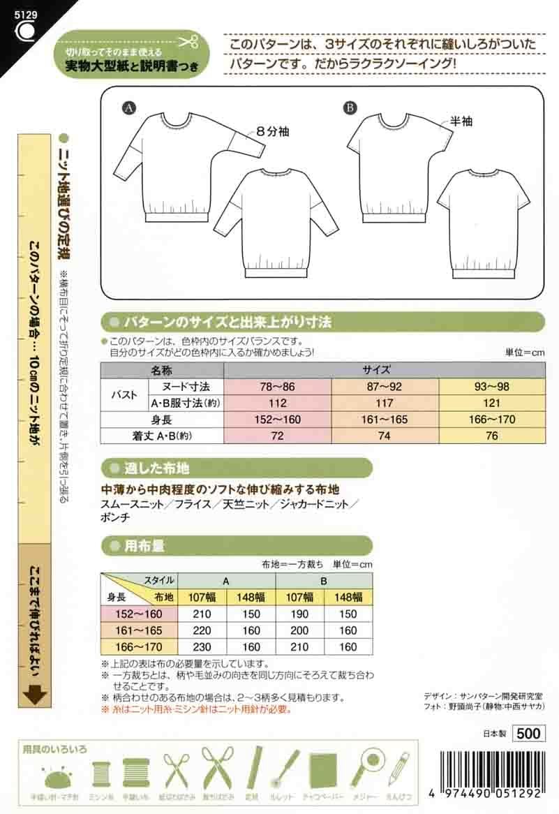 伸び縮みする布地専用、3サイズ縫いしろつきのパターン。