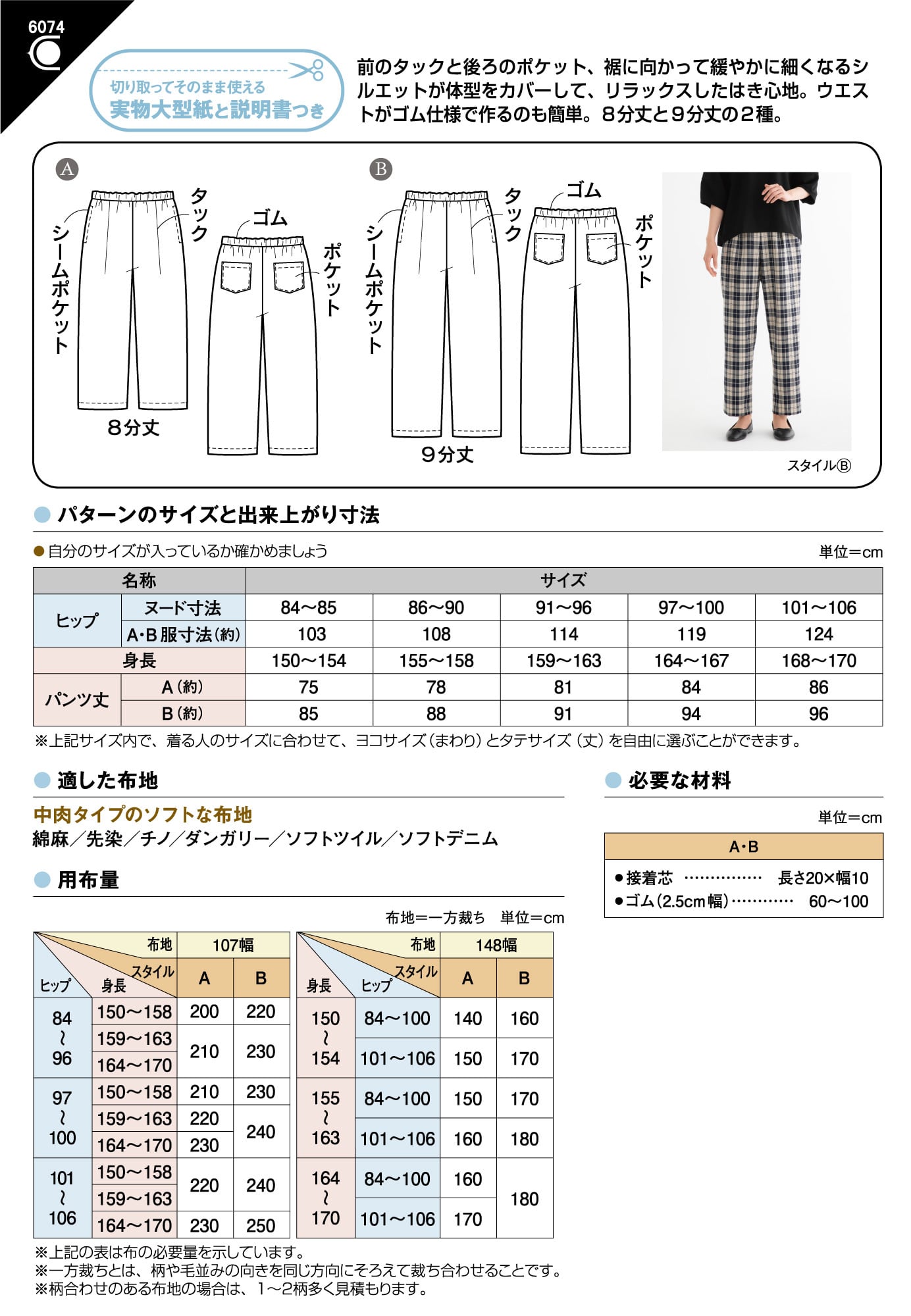 ※その他、サイズ、出来上がり寸法、必要な材料、用布量などは、画像内の仕様をご覧ください。