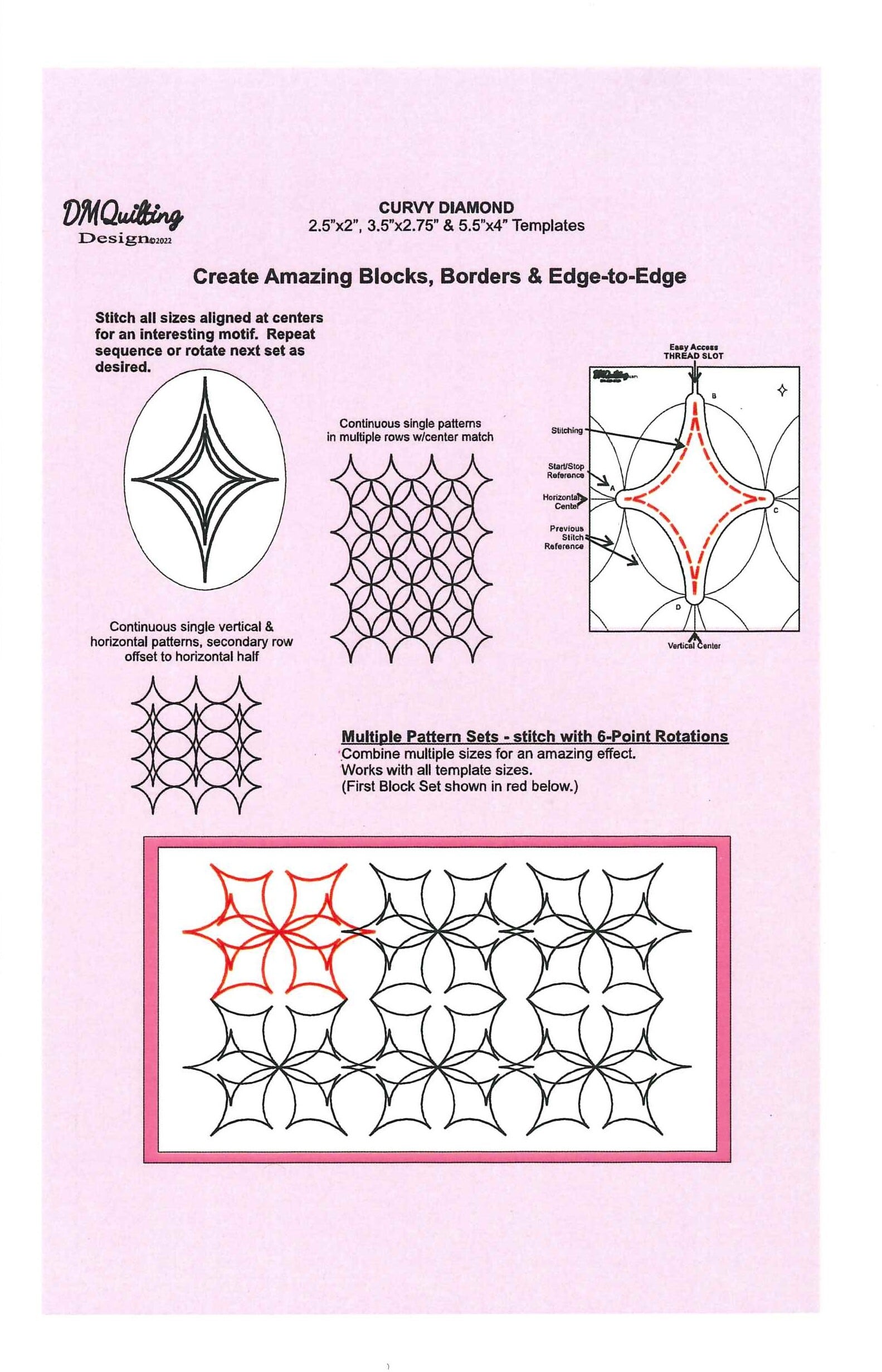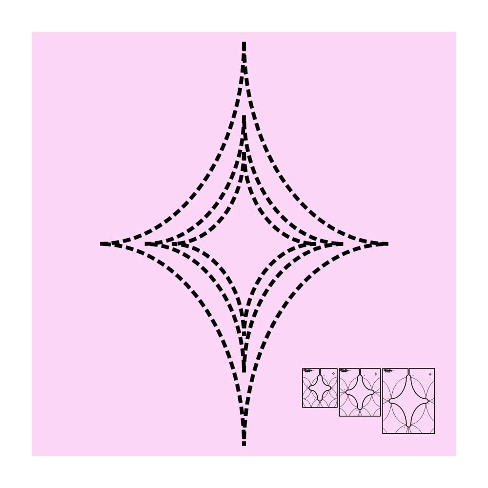この「DM Quilting」のカービー・ダイヤモンドテンプレートは、異なるサイズの3点がセットになっておりまます。