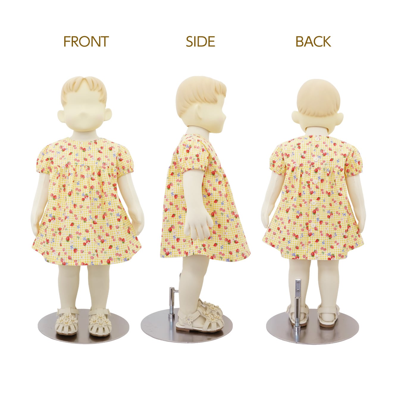 ・ヨークは赤ちゃんの肌に優しい2 枚仕立て。Bは別布の丸衿つき。 普遍的なデザインのワンピースはお祝いのギフトや特別なお出かけにもぴったりの1着です。