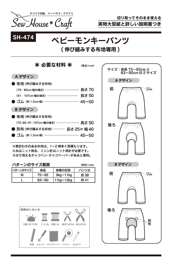 ※その他、サイズ、出来上がり寸法、必要な材料、用布量などは、