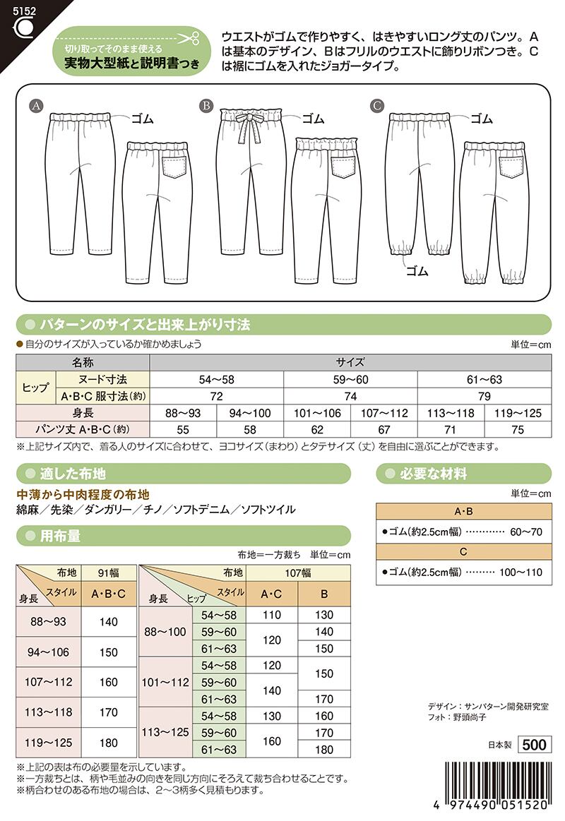 ウエストがゴムで作りやすく、はきやすいロングパンツ。