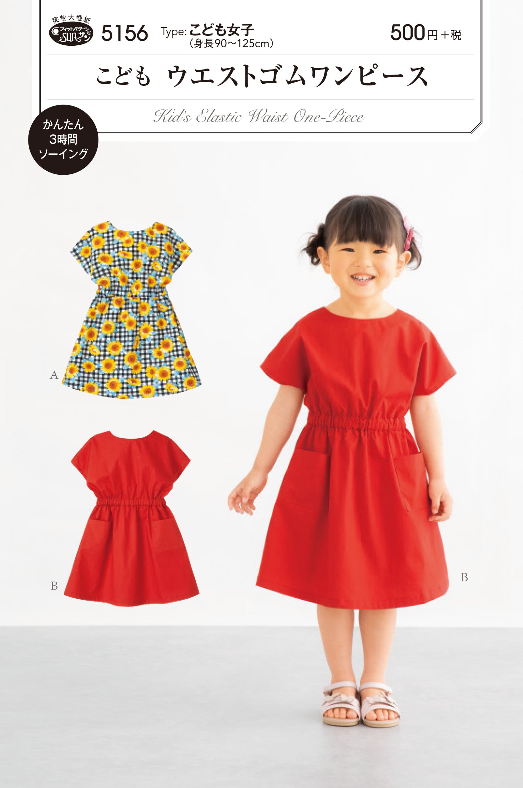 ウエストのゴムでふんわり可愛いシルエットのひざ下丈ワンピース。涼しげでお姉さんっぽいフレンチスリーブとウエストゴム仕様だから、脱ぎ着が楽で作るのも簡単。ポケットつきデザインも選べます。夏のお出かけにも普段着にも大活躍!大人用の「6025 ウエストゴムワンピース」とあわせて作れば親子ペアになります。