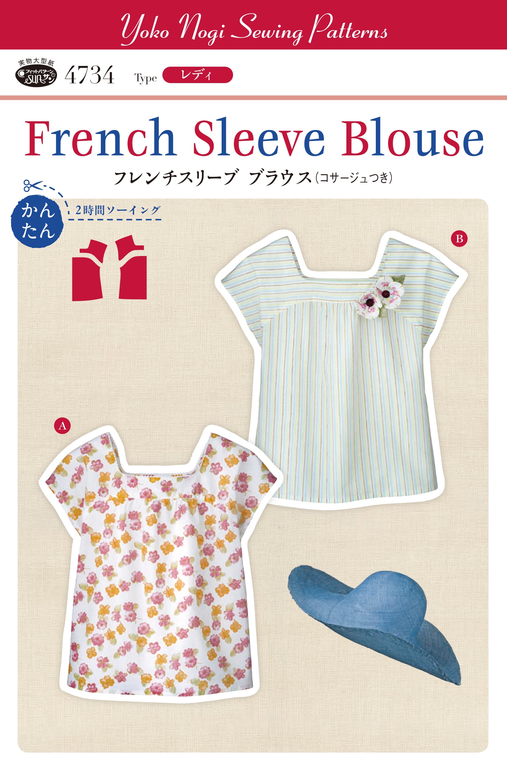 胸元のカーブした切り替えにギャザーを入れたフレンチスリーブブラウスは、かぶりタイプで、作るのがカンタン!