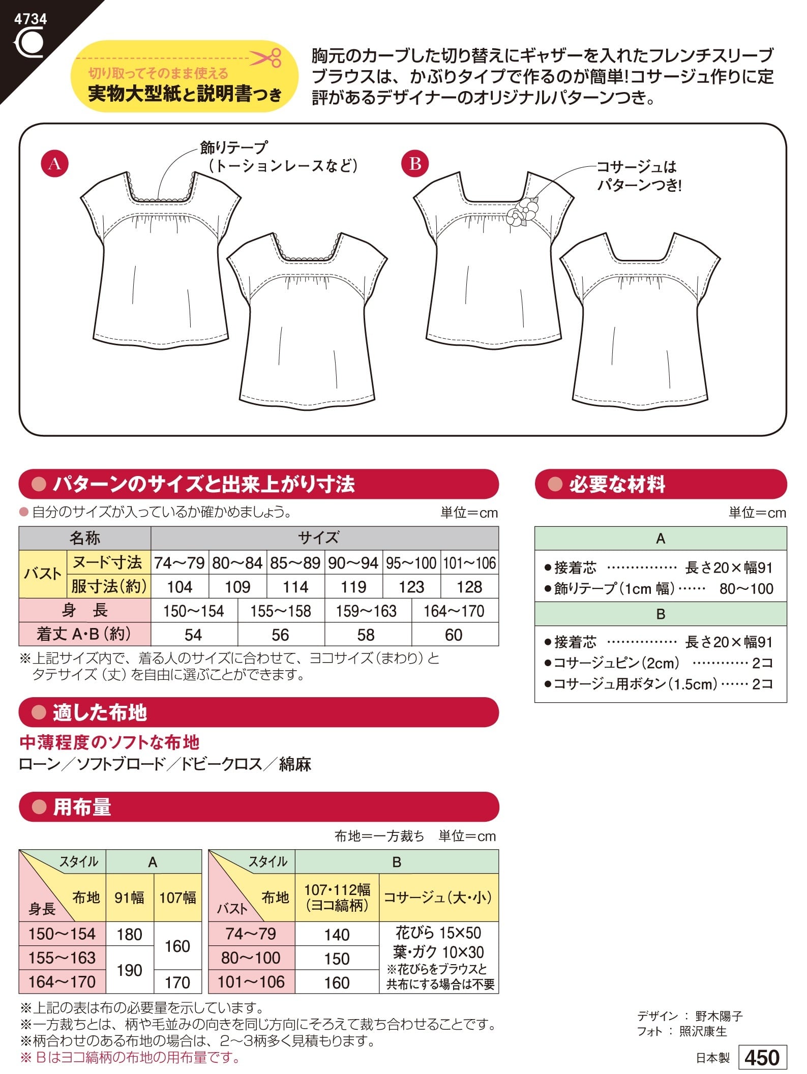 フレンチスリーブブラウスーコサージュつきー(4734)フィットパターンサン