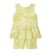 ・トップスはふんわりとしたギャザーフリルのペプラム(ウエストから裾に向かってふわっと広がったデザイン)。
